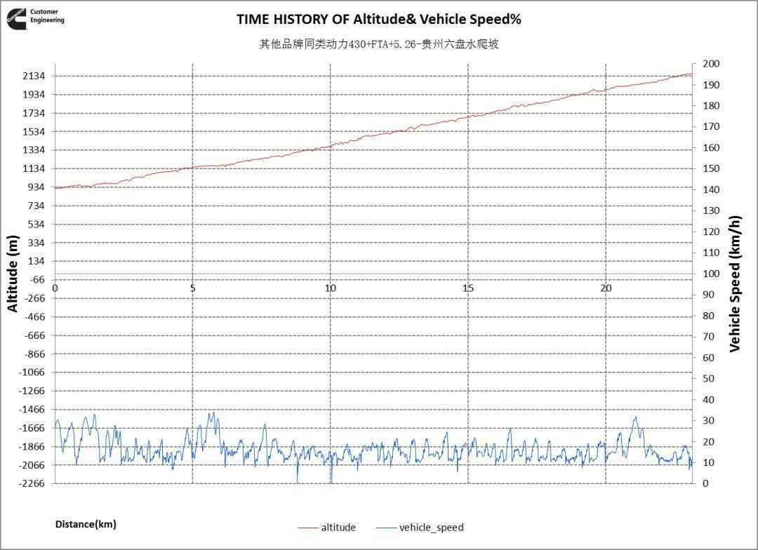 对比的数据两车来自同一段道路,按海拔截取,用户从海拔约900m一直爬坡到2100m。